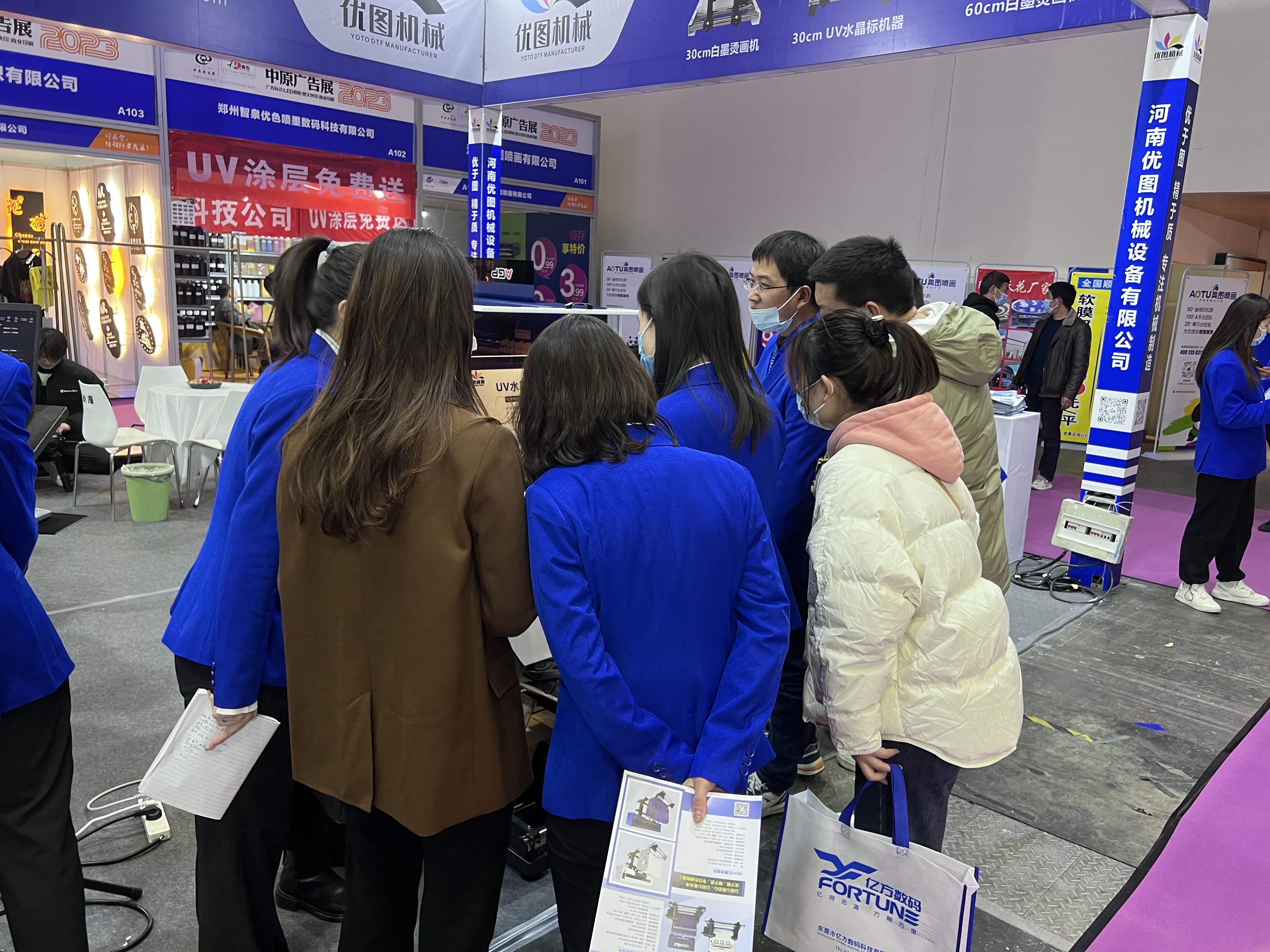 本次展会中,优图机械凭借数码印刷喷墨创新设备的优势,及热枕细致的服务,成为中原广告展上耀眼的明星,前来了解咨询的客户络绎不绝,现场好评如潮。